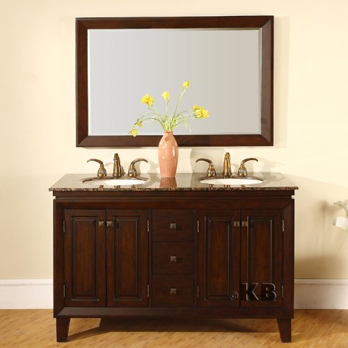 55" Double Sink Bathroom Vanity Furniture with Baltic Brown Granite Top and Matching Mirror 208 Reviews
